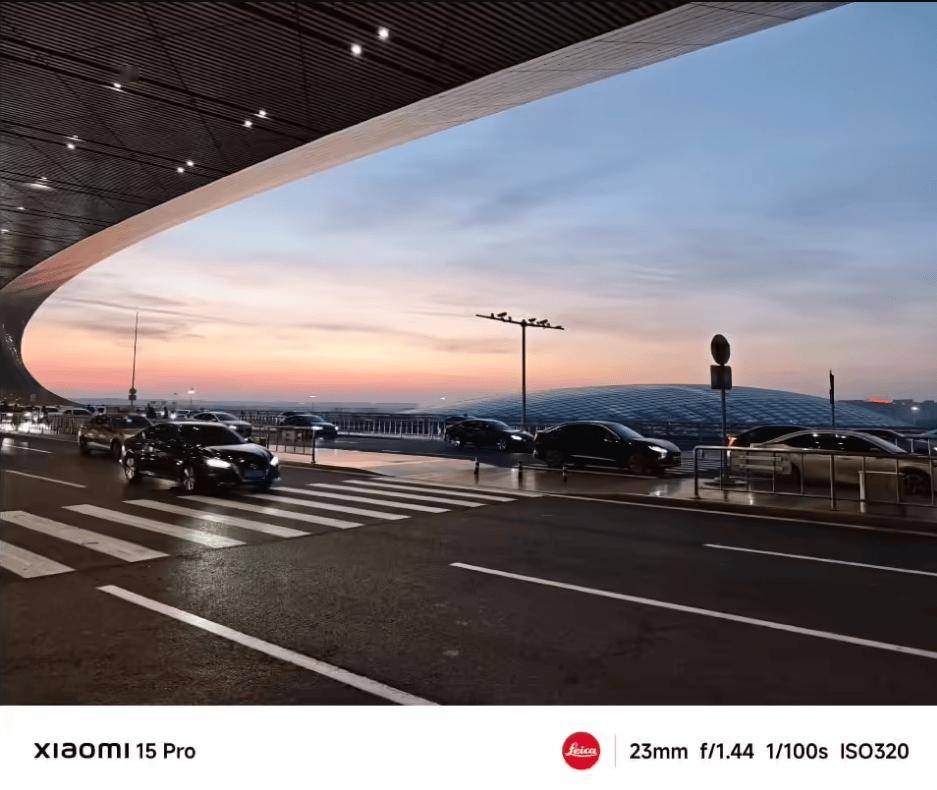 比如下面这张暗光下拍摄的机场傍晚的照片,光线环境非常复杂,有渐暗的天光、有车灯、有照明灯,但是小米 15 Pro 这张照片给人的第一观感就是,不仅对光影的还原很出色,且亮部不过曝、暗部有细节,阴影过渡细腻自然,光影到位,把夜色的氛围感还原得很真实。这固然有手机影像光学系统的作用,但也离不开骁龙 8 至尊版在影像信息和算法处理方面提供的强大支撑。