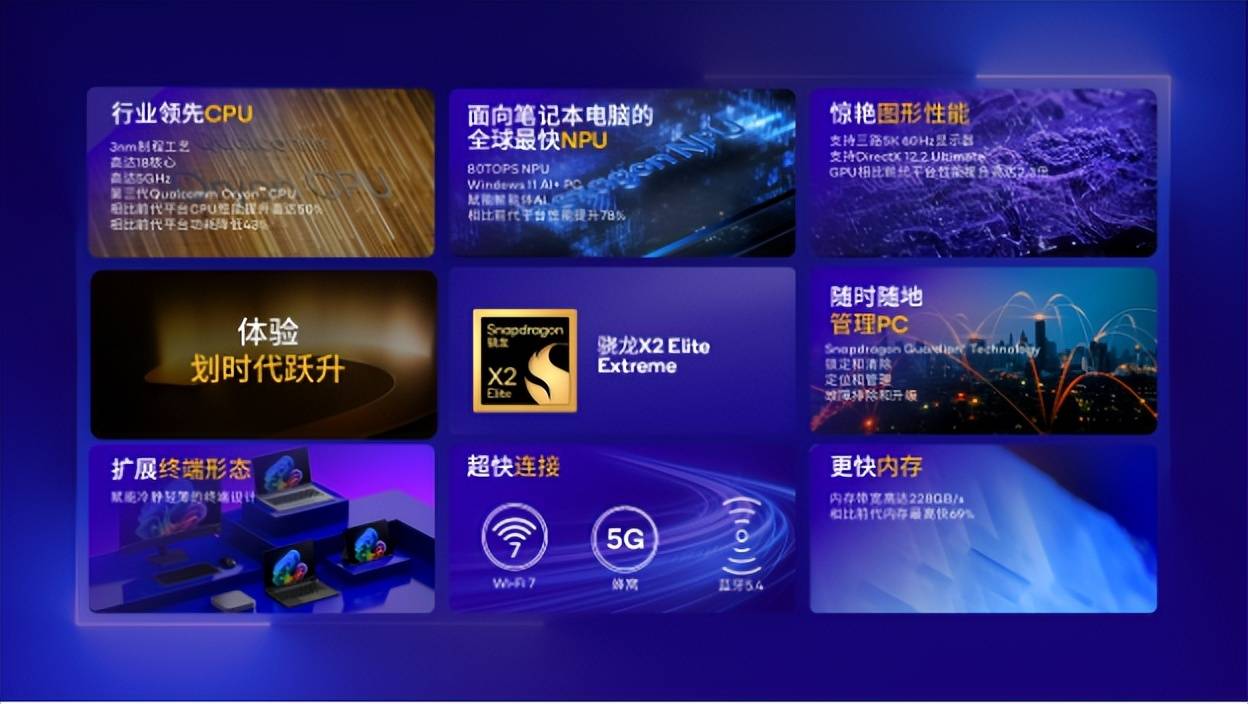 先说说电脑端的 “狠角色”—— 骁龙 X2 Elite Extreme 和骁龙 X2 Elite。这俩是专门为高端 Windows 11 笔记本设计的,核心卖点就一个:快,还省电。