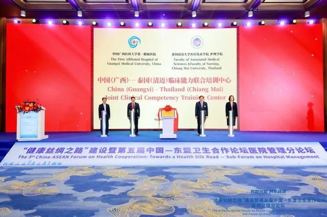 会上,广西医科大学第一附属医院展示了三大成果:中国—东盟医疗保健合作中心(广西)启用、广西医科大学第一附属医院“泌语医谈”智能体发布、中国(广西)-泰国(清迈)临床能力培训中心揭牌。
