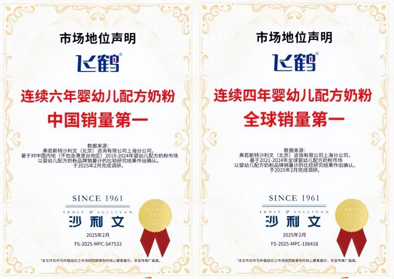 这份对质量的坚守,也让飞鹤赢得了消费者的青睐,持续夯实市场领军地位。据弗若斯特沙利文统计,飞鹤已连续六年蝉联中国婴配粉市场销量第一,连续四年位居全球婴配粉销量榜首。2025年上半年,飞鹤婴配粉全渠道市场份额及销量继续稳居市场第一。在品牌影响力方面,权威调研机构数据显示,2025年第二季度,飞鹤品牌认知度高达99%,稳居用户心智首位。