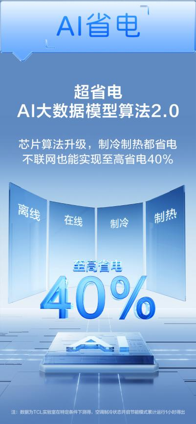 在智能便捷与节能方面,TCL小蓝翼P6 Plus AI健康空调同样展现出卓越的性能。在AI语音交互上,它搭载第二代离线语音自由说功能,内置超100万条离线指令词,无需联网即可实现语音控制,真正解放双手。在AI省电功能上,该空调采用AI大数据模型算法2.0,芯片算法升级后,即便不联网也能实现至高40%的省电效果。同时,它具备超一级能效,APF值高达4.8,远高于国家一级能效标准,全年可省电650度。