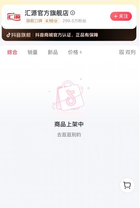 近日,有消费者发现,天猫、抖音等平台上的“汇源官方旗舰店”内已无货。9月25日下午,记者也查询发现,对应网店依旧处于无商品状态。客服称:“店铺正在升级调整中,会尽快上架商品。”
